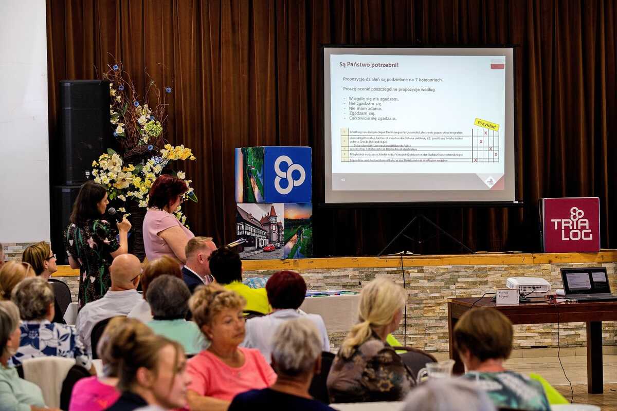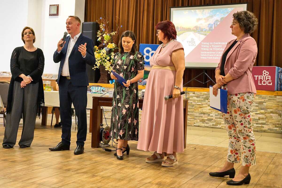 Zu unserem zweiten Dreiländerdinner, der am 17. Juni 2025 im Multifunktionalen Zentrum des Dreiländerecks in Bogatynia-Markocice stattfand, wurden alle Teilnehmer der vier Workshops sowie die Teilnehmer des ersten Dreiländerdinners eingeladen. Der Einladung waren 45 Bürger aus den drei Städten gefolgt. Bevor es zum gemeinsamen Dinner überging, musste noch eine wichtige Aufgabe erfüllt werden: Die Teilnehmer erhielten nach Themen geordnete Listen der Vorschläge in ihrer jeweiligen Landessprache und konnten per Ankreuzen eines von 5 Bewertungskriterien jeden Vorschlag einzeln bewerten. Aus dem Ergebnis dieser Einzelbewertungen konnte dann eine Rangfolge der wichtigsten Themen und Vorschläge für die Zukunftsgestaltung unserer Dreiländerregion ermittelt werden.