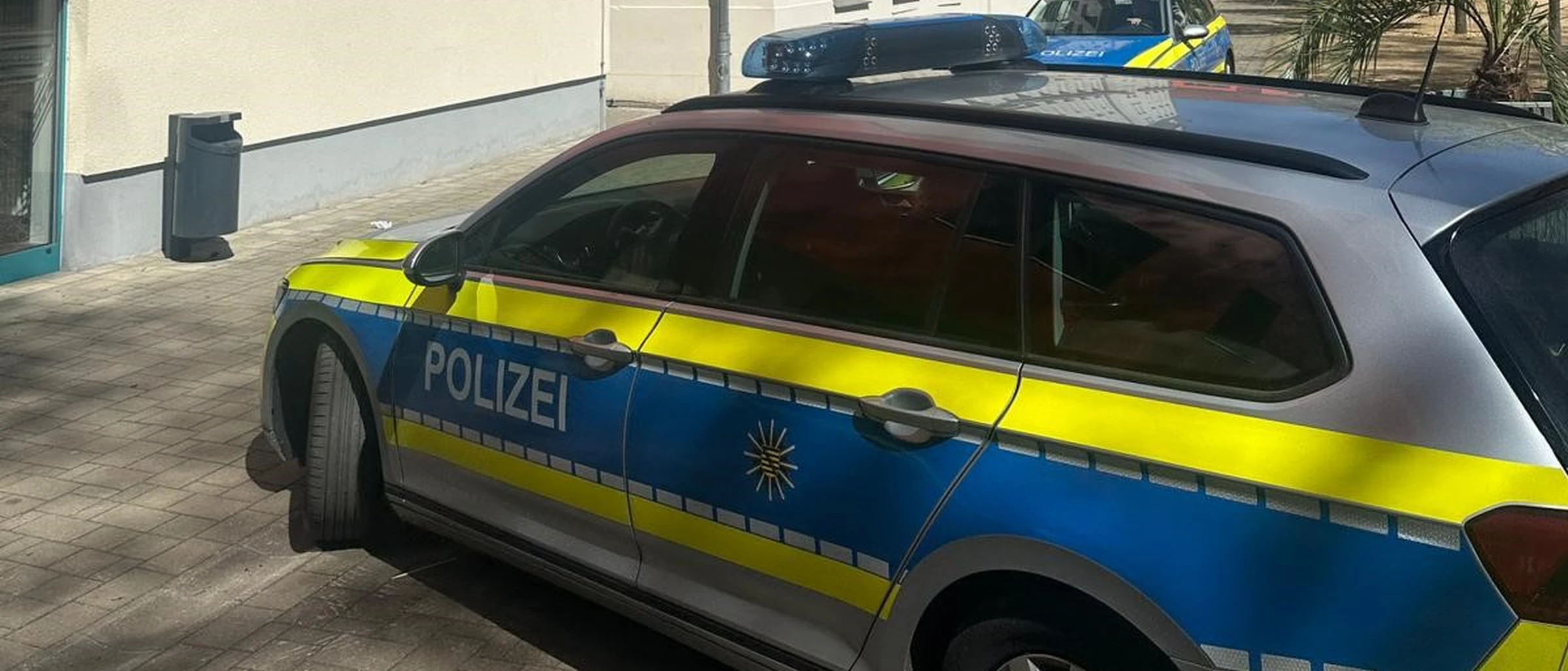 Die Landespolizei ist vor Ort und durchsucht das Gebäude.